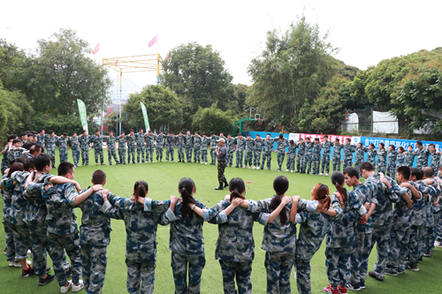 我們?yōu)槊恳粋€(gè)家人而感動(dòng)。 甘心做基石的大塊頭們,他們無疑是最辛苦的,他們托起了整個(gè)團(tuán)隊(duì)!但他們沒有人叫一聲苦; 率先登上高墻的身體靈活的隊(duì)友,他們延長了每個(gè)人的雙臂,所有人都是他們拉上去的, 教官告訴我們,拉人的時(shí)候要用“生死扣”,這樣無力的時(shí)候才不會(huì)脫開, 可是事實(shí)上,“生死扣”不僅僅連接了我們的雙手,也連接了我們的心靈! 哪怕前方是刀山火海,哪怕前面有懸崖峭壁, 只要我們手挽手,肩并肩,沒有過不去的坎,沒有登不上的山!