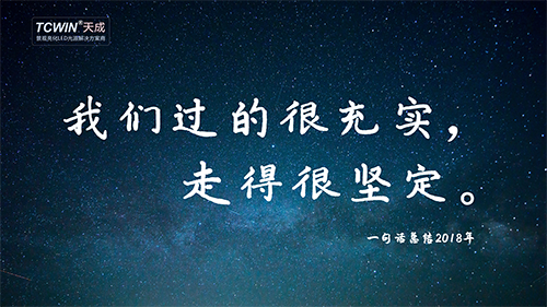2018年我們過得很充實,走得很堅定。工作態(tài)度上,我們堅持“茍日新、日日新、又日新”;為人價值觀上,“信念、勤奮、學習”向來是林總經理倡導的六字格言,深刻地銘記在每位天成人的心里,我們要向“富強、民主、文明、核心、自由、平等、公正、法治、愛國、敬業(yè)、誠信、友善”二十四字社會主義核心價值觀看齊。