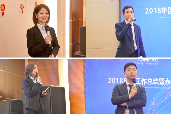 天成照明副總經理李浩銳先生為大會開幕致歡迎辭并作重要講話。李浩銳先生繪聲繪色地和全體天成人回顧起2018年我們經歷過的風風雨雨和取得的成績。天成照明在2018年重點突出地建設企業(yè)和團隊文化、不畏艱巨的自主研發(fā)創(chuàng)新、遠見卓識地全球開拓、為公益事業(yè)奉獻力量等,在各方面取得的成績是全體天成人驕傲和自豪。2019年,我們凝心聚力,砥礪前行,為美好的明天不懈努力奮斗!