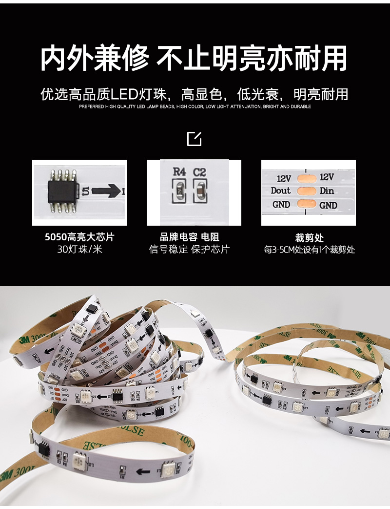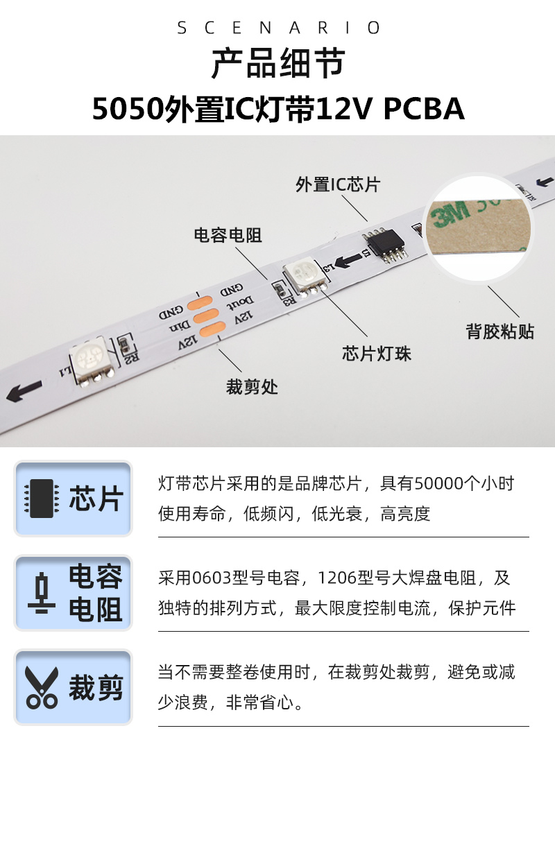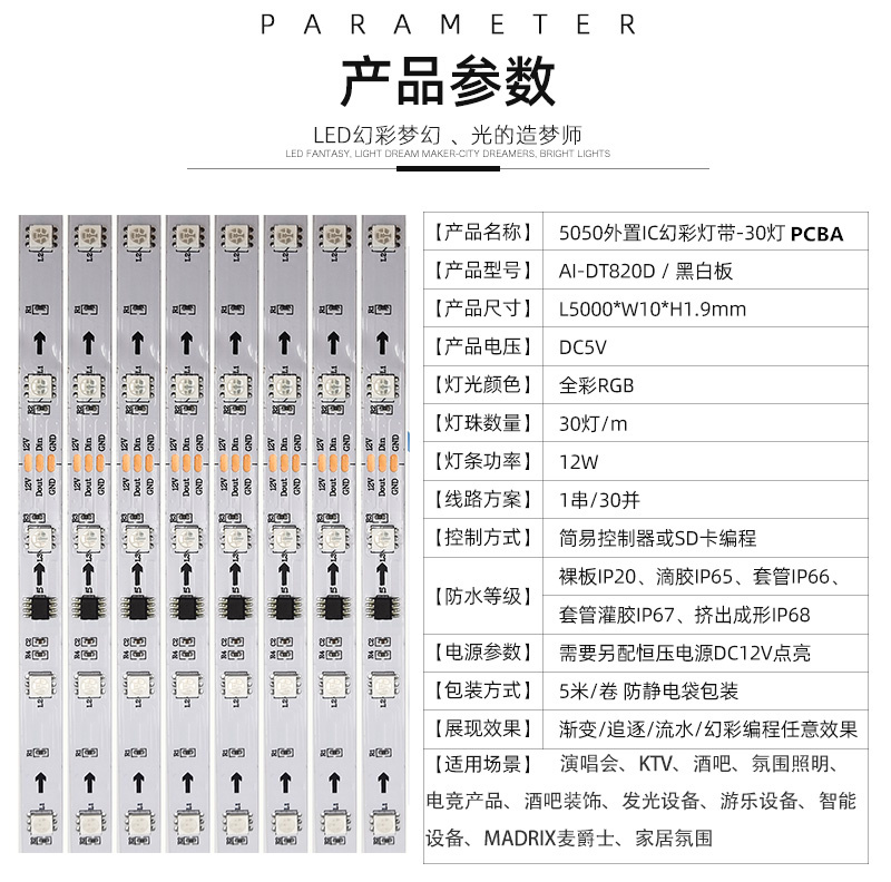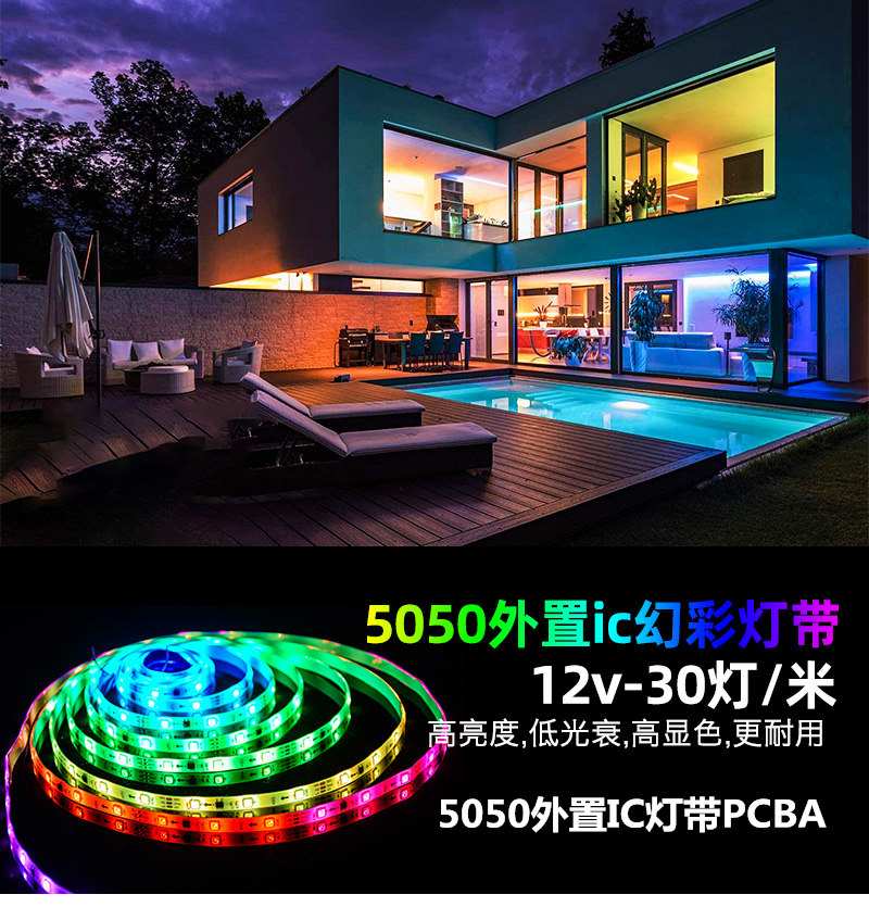 5050幻彩內(nèi)/外置IC軟燈帶PCBA方案