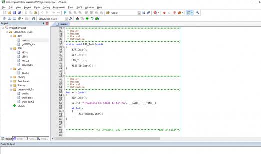 參照官方的提供的KEIL模板工程,重新新建立了一個適用于自己的通用工程模板,基于開發板的硬件原理圖,將LED、KEY和USART0這幾個外設進行了配置,添加了自編的TASK任務調度程序;為了方便調試,基于USART0實現了Letter-shell的移植和應用,示意圖如下所示: